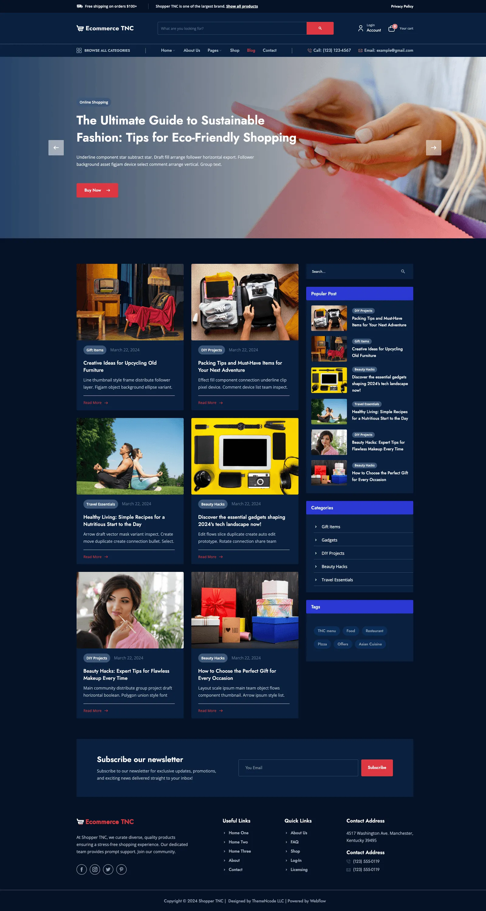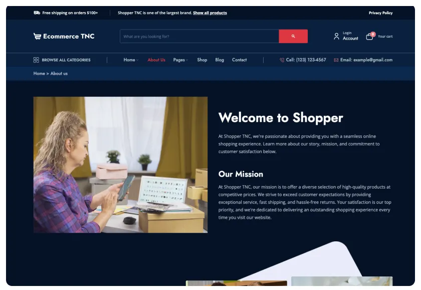 Experience the next level of online shopping with Shopper TNC – a sleek and modern HTML Ecommerce template designed to transform your Ecommerce shop or store into an eye-catching dark mode masterpiece.