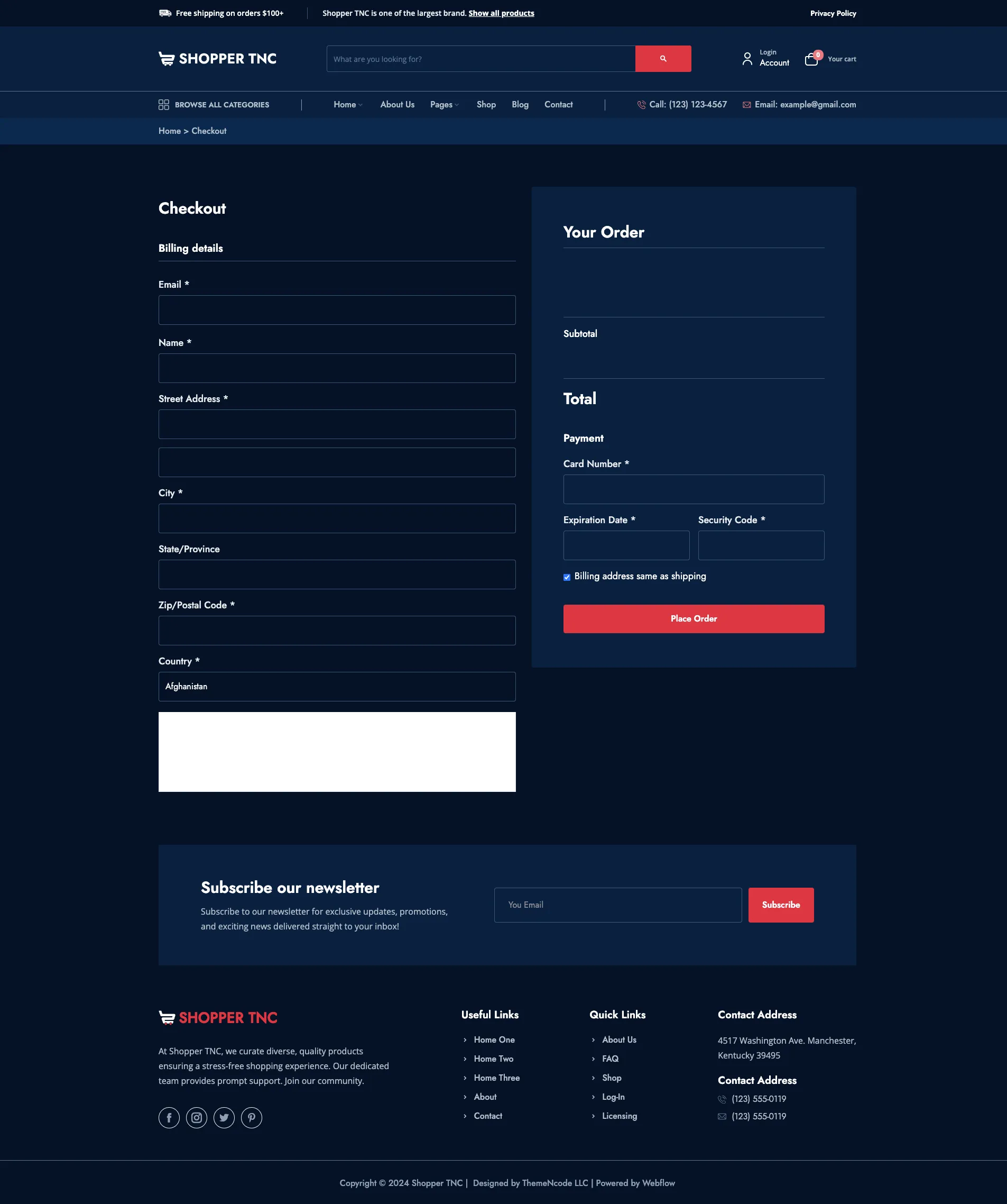 Newsletter form is essential to generate leads for your business. Shopper TNC has an amazing newsletter form.